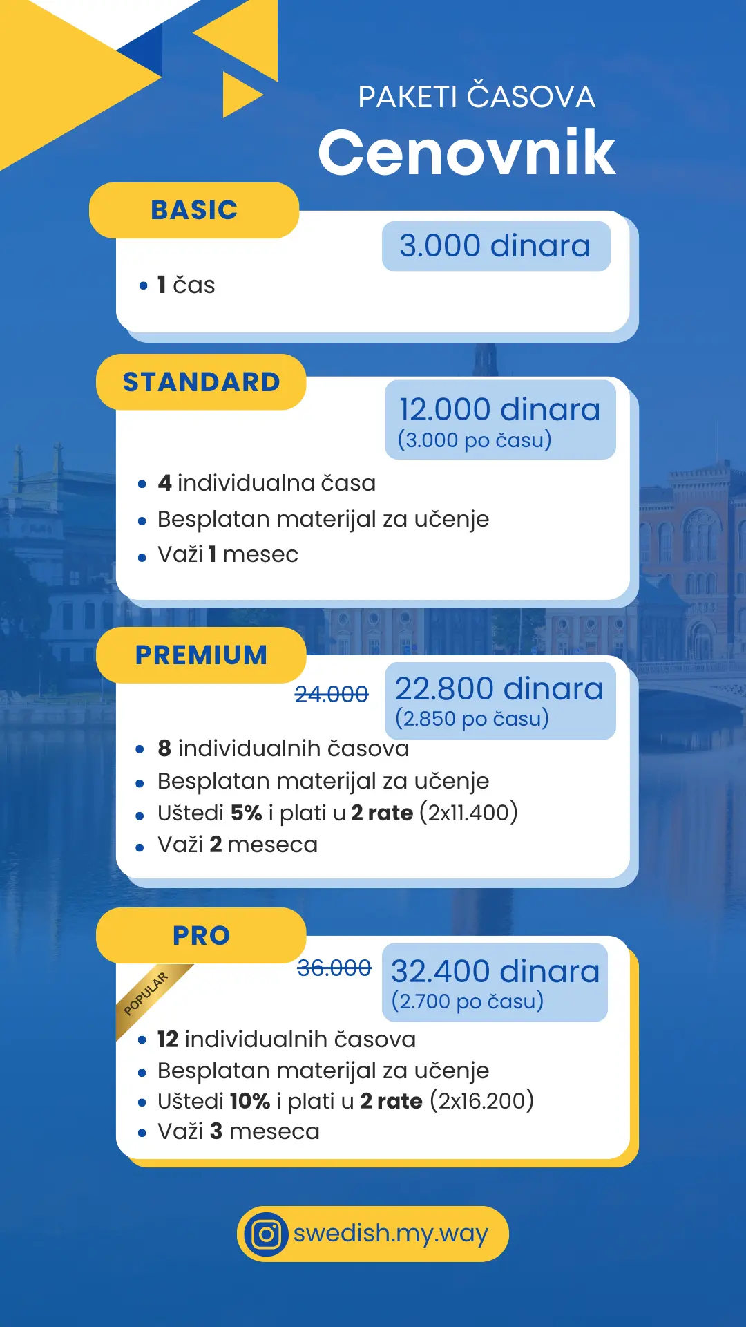 *Cene u evrima važe za polaznike iz inostranstva. Ako si iz Srbije, cenovnik u dinarima pogledaj OVDE